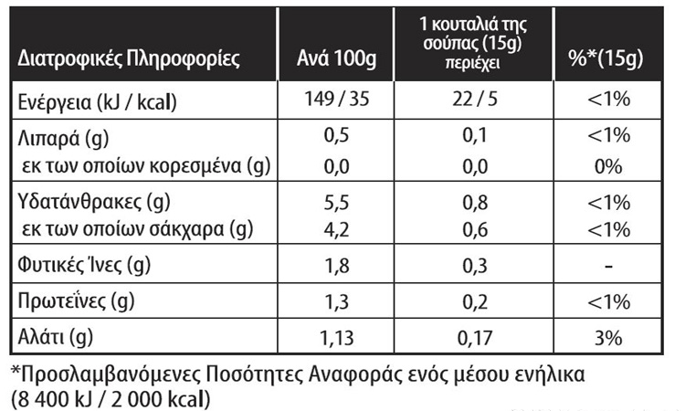 Πρέπει να γνωρίζετε πως λόγω της διαρκούς προσπάθειας βελτίωσης των προϊόντων μας για την ικανοποίηση των αναγκών του καταναλωτικού μας κοινού, ενδέχεται να πραγματοποιούνται αλλαγές ή τροποποιήσεις στα συστατικά των προϊόντων. Για το λόγο αυτό, σας συμβουλεύουμε να ελέγχετε πάντα την ετικέτα στη συσκευασία των προϊόντων, καθώς αποτελεί την πιο ενημερωμένη πληροφόρηση.